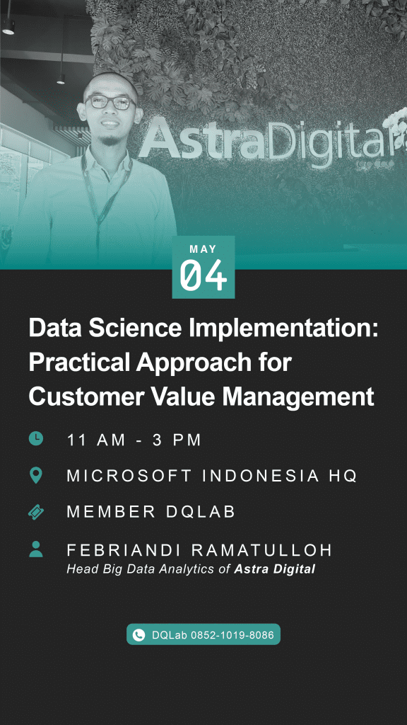 Data Science Implementation: Practical Approach for Customer Value Management Untuk memberikan pengalaman belajar praktis dan terupdate dari studi kasus Industri, DQLab menghadirkan pakar data Febriandi Rahmatulloh, […]