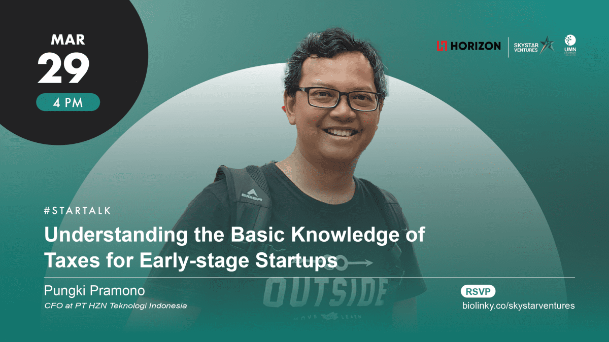 Namun, sebagian besar orang belum memiliki pengetahuan yang cukup mengenai pajak. Maka dari itu, Pungki Pramono, selaku CFO PT HZN Teknologi Indonesia, dalam STARTALK kalian ini menjelaskan dasar ilmu pajak yang dibutuhkan oleh pebisnis atau founder sebuah startup. Yuk, simak informasinya!