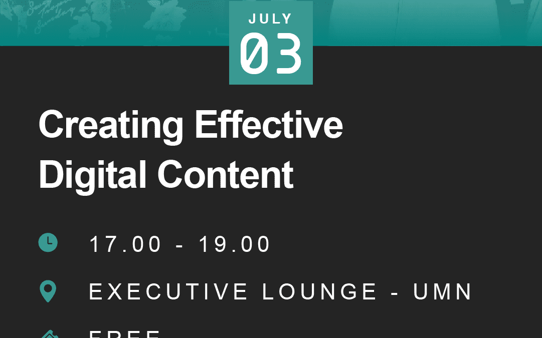 Ikuti Mini Workshop bersama Skystar Ventures dengan tema “Creating Effective Digital Content” bersama dengan Hilman Desfakhrian – Head of Content Marketing at Moka (POS) & Saviq Bachdar – Senior Content Strategist at Gojek.